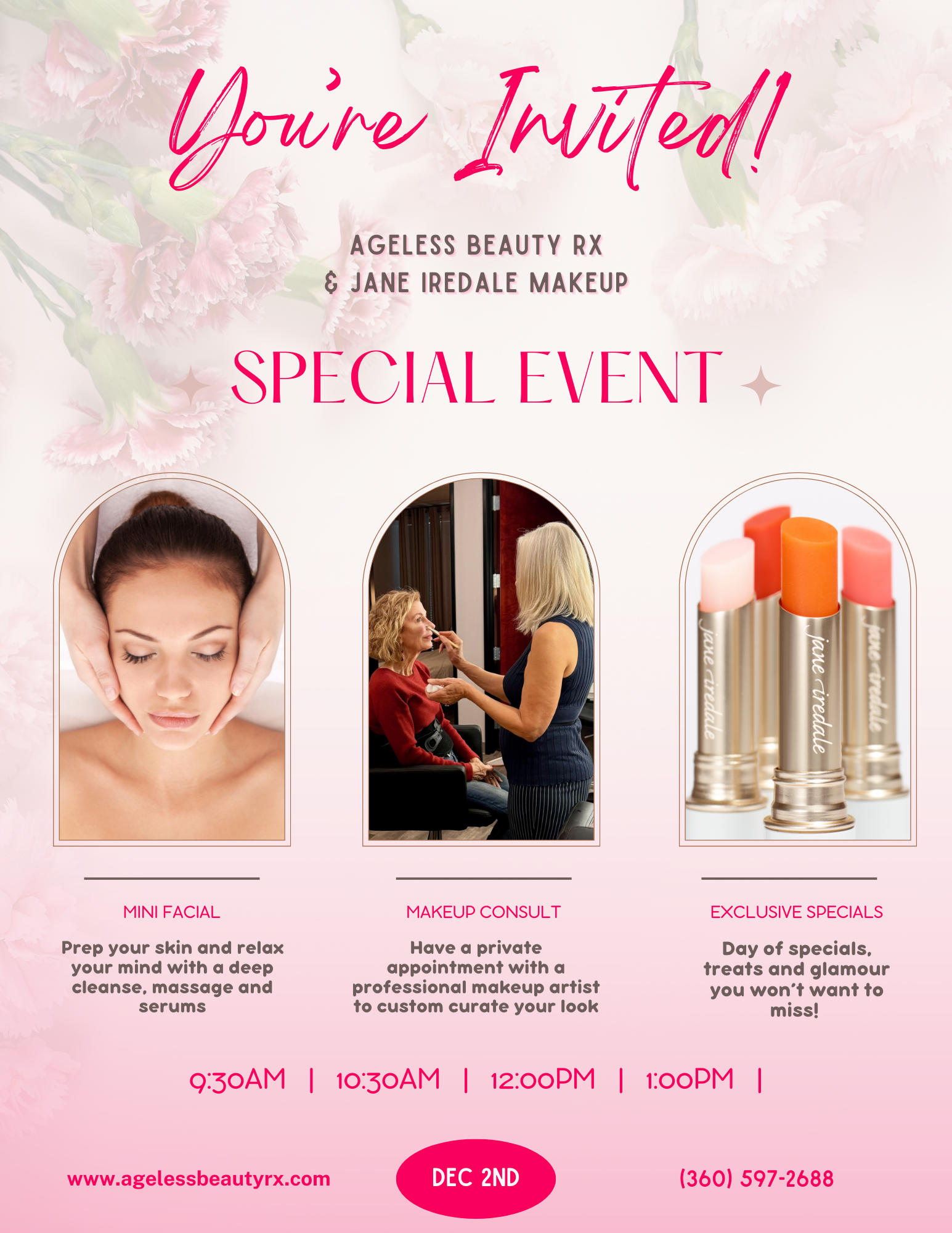 The average woman puts over 500 synthetic chemicals in her body every day and 60% of what’s applied to the skin the body absorbs. Ageless Beauty Rx cares about its clients’ health and wellness and wants them to avoid potentially harmful chemicals in their makeup.